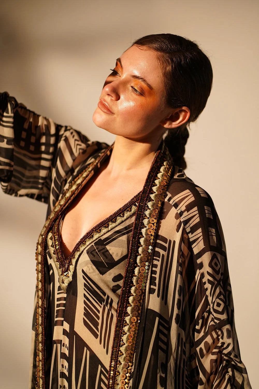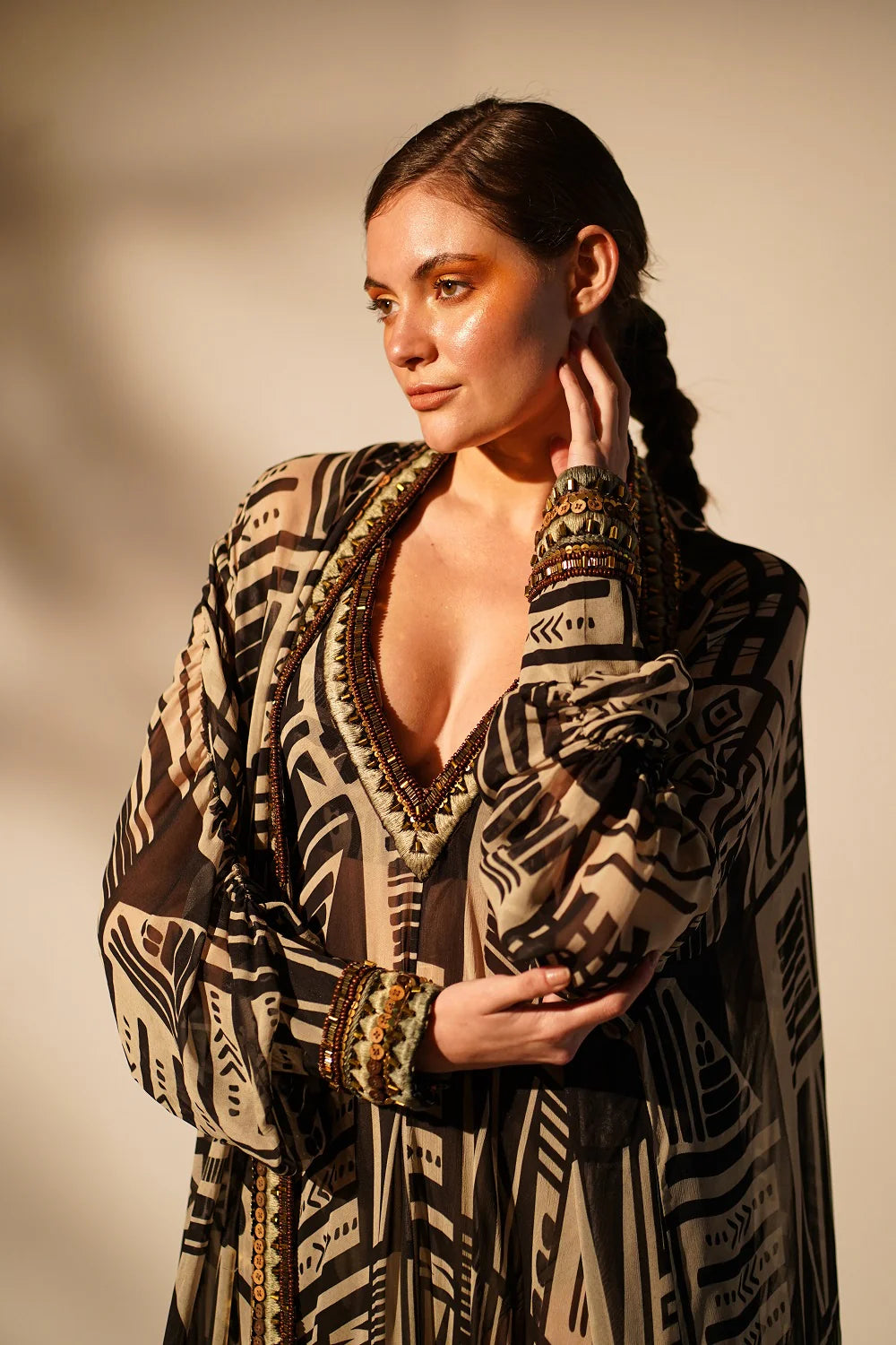 All our garments are on a made to order basis. Once your order is placed, we do not offer any exchange or returns. However, in case of alterations, we will be happy to assist you. You may contact us at +91 8123339730 or email us at info@thevibecheckbysb.com